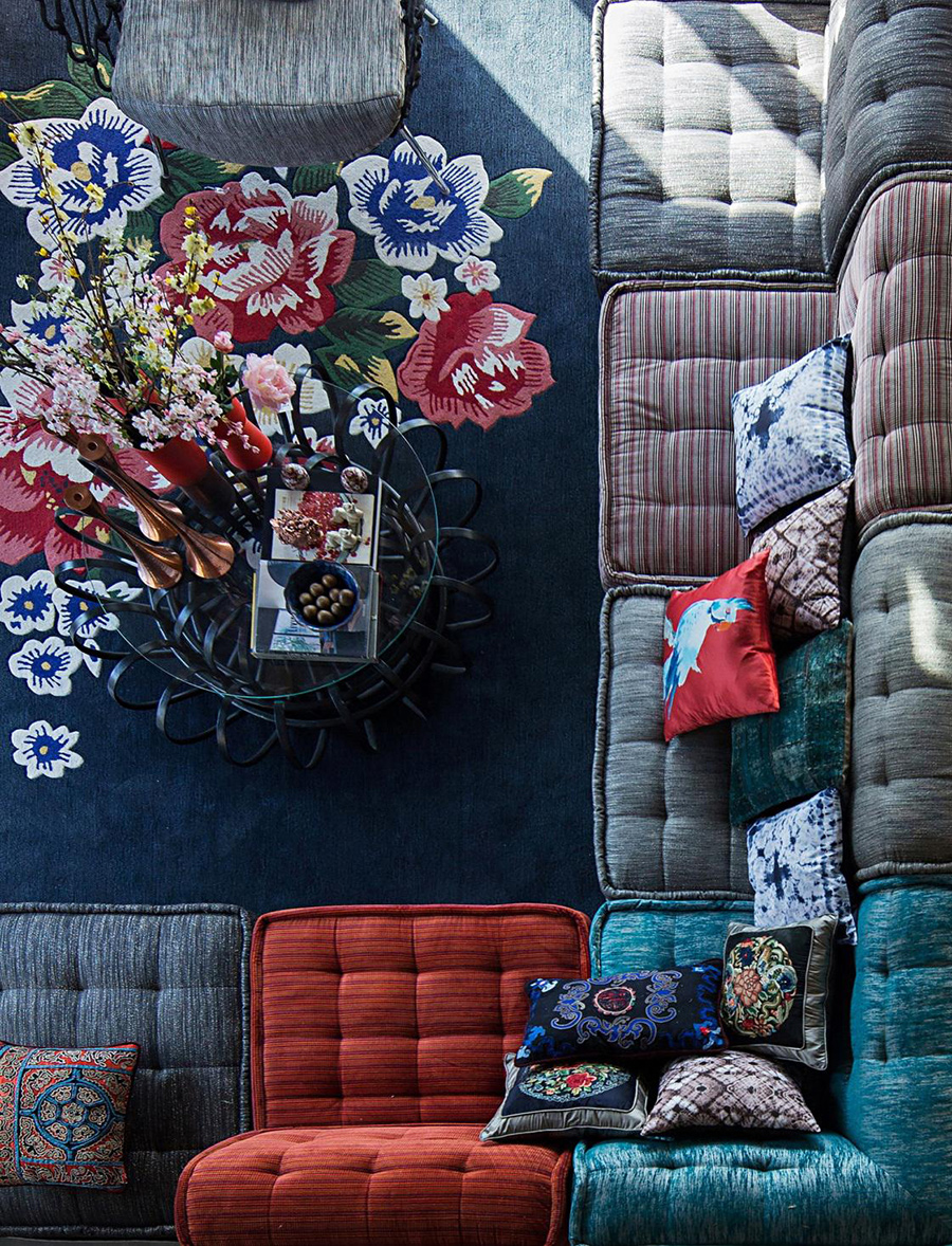 設計中(zhōng),抛開了小家碧玉的羞澀要什,牡丹花(huā),青花(huā)瓷,老繡片,蠟染布料,長制竹編吊燈等元素的碰撞,真正體現出一種老而不古的磅礴生命力。我們也用另議來一個(gè)角度審視自己,解構文(wén)化與潮流,打破常規的生活狀态,碰討跳撞創意與靈感,實現新與舊的合奏共鳴。